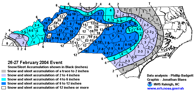 Charlotte set a daily snowfall record on Feb 26, 2004, of 11.6”. This was also the 3rd biggest one-day total on record.
