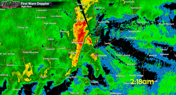 The lack of a radar and the area being split between offices makes for a coordination nightmare. All three of these offices have their own Doppler radar which they primarily look at. All of them are too far away to see the lowest levels of storms around Charlotte. So they flip between the TDWR near Charlotte which has limitations of it’s own but at least its here. Lucky for us we at NewsChannel 36 have our own c-band radar in Dallas, NC to see storms around Charlotte. This helps me see things and you but I can’t issue tornado warnings that make weather radios, texts, emails and sirens go off. Which in this case being the middle of the night was needed. Unless you were awake watching TV or on-line with me you had no idea this was coming.