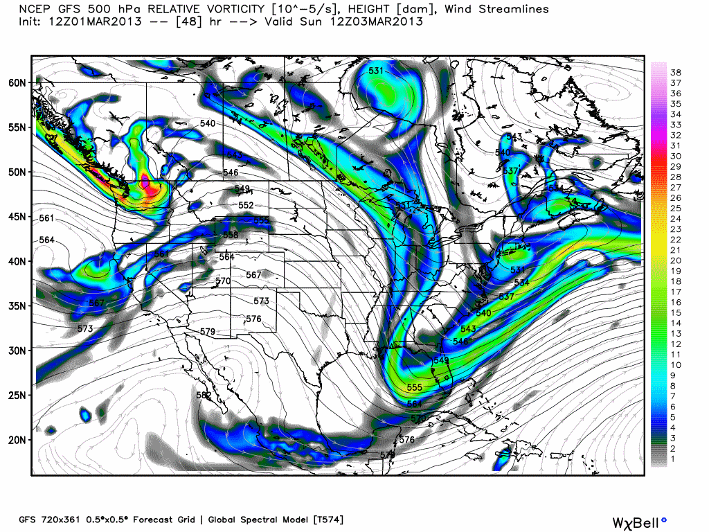 Then things start to get interesting as the 500mb low and vorticity crank up and move southeast into the trough on the east coast.