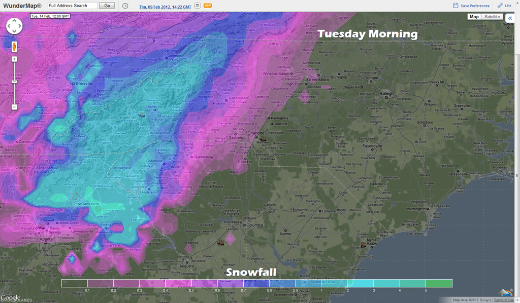 This part looks iffy right now but Tuesday morning will have to be watched closely. Below is the ECMWF model snowfall forecast for Tuesday morning.