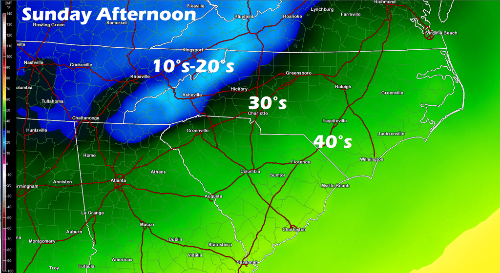 This looks to mainly be a mountain event with a powdery 1-3” snowfall the connection to the gulf low is something to watch. With the really cold air and with highs in the teens combined with 20-30 mph winds. This 1-3” will feel a lot worse in the mountains both Saturday and Sunday.